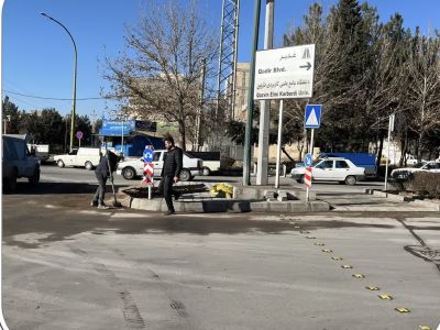 تجدید نصب ملزومات ترافیکی و بشکه ایمنی خیابان توحید